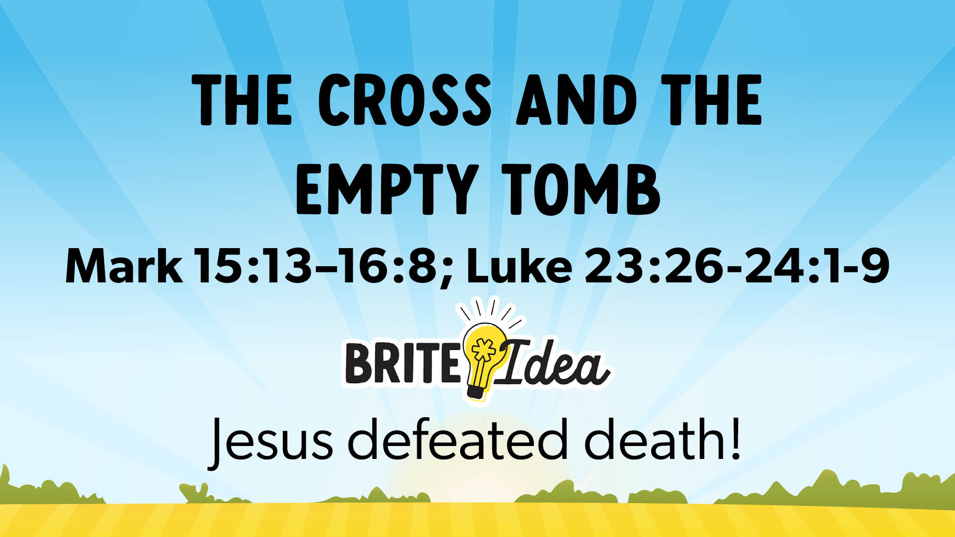 After His arrest, Jesus was led away and put on trial by religious and political officials. Even though He had done nothing wrong, Jesus was beaten, mocked, and sentenced to die on the cross. Jesus was crucified in between two thieves. One made fun of Him. After Jesus died, He was buried in a tomb. When some of His followers returned on the first day of the week, they were shocked to find an empty tomb. Angels said, “He is not here! He is risen!” Jesus defeated death!