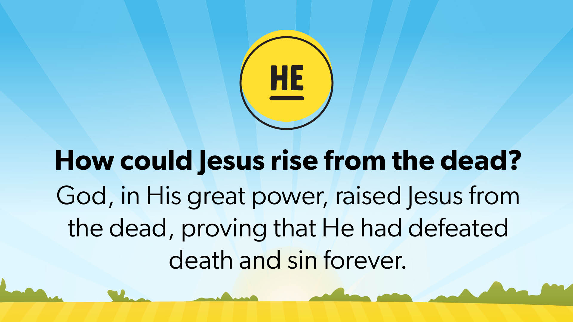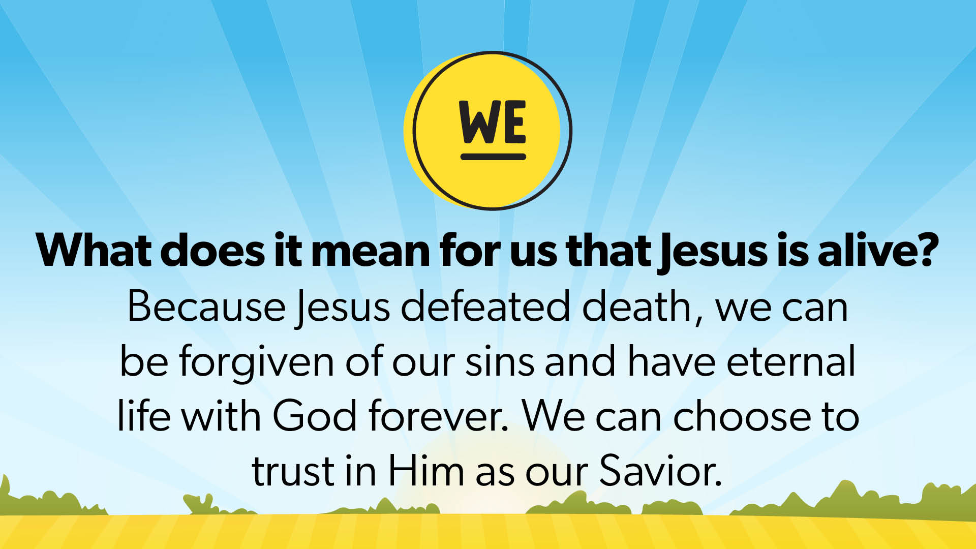 Jesus was alive and everything was about to change. Romans 6:23 tells us that the wages of sin is death. Death is the punishment we all deserve because of the things we think, say or do that disobey God. Jesus died for our sins, but He didn’t stay dead. He rose from the dead, defeating death and making a way for us to live forever with Him. When we understand that Jesus is the only way to be forgiven and trust Him as our Savior, we will live forever with Him.